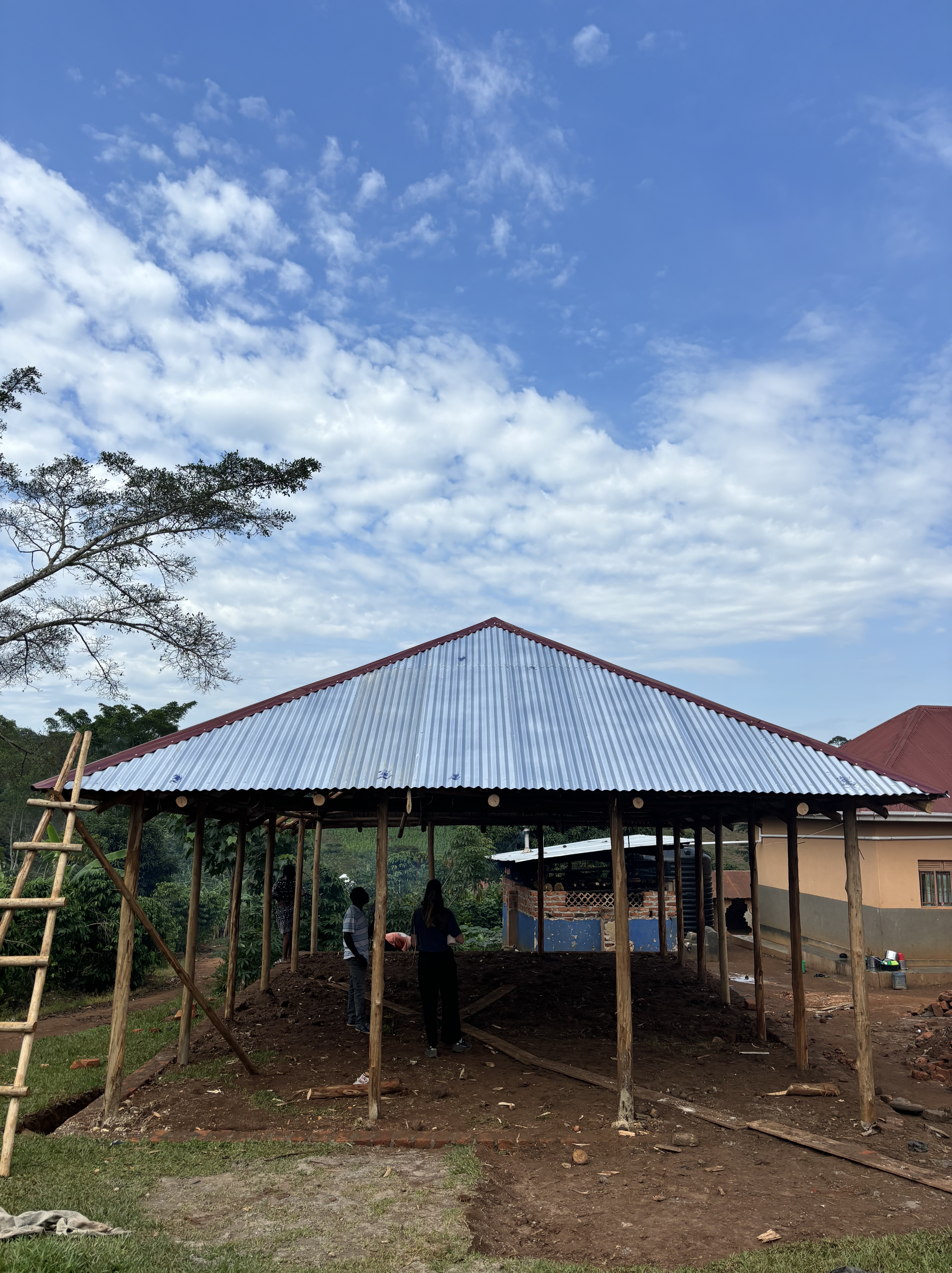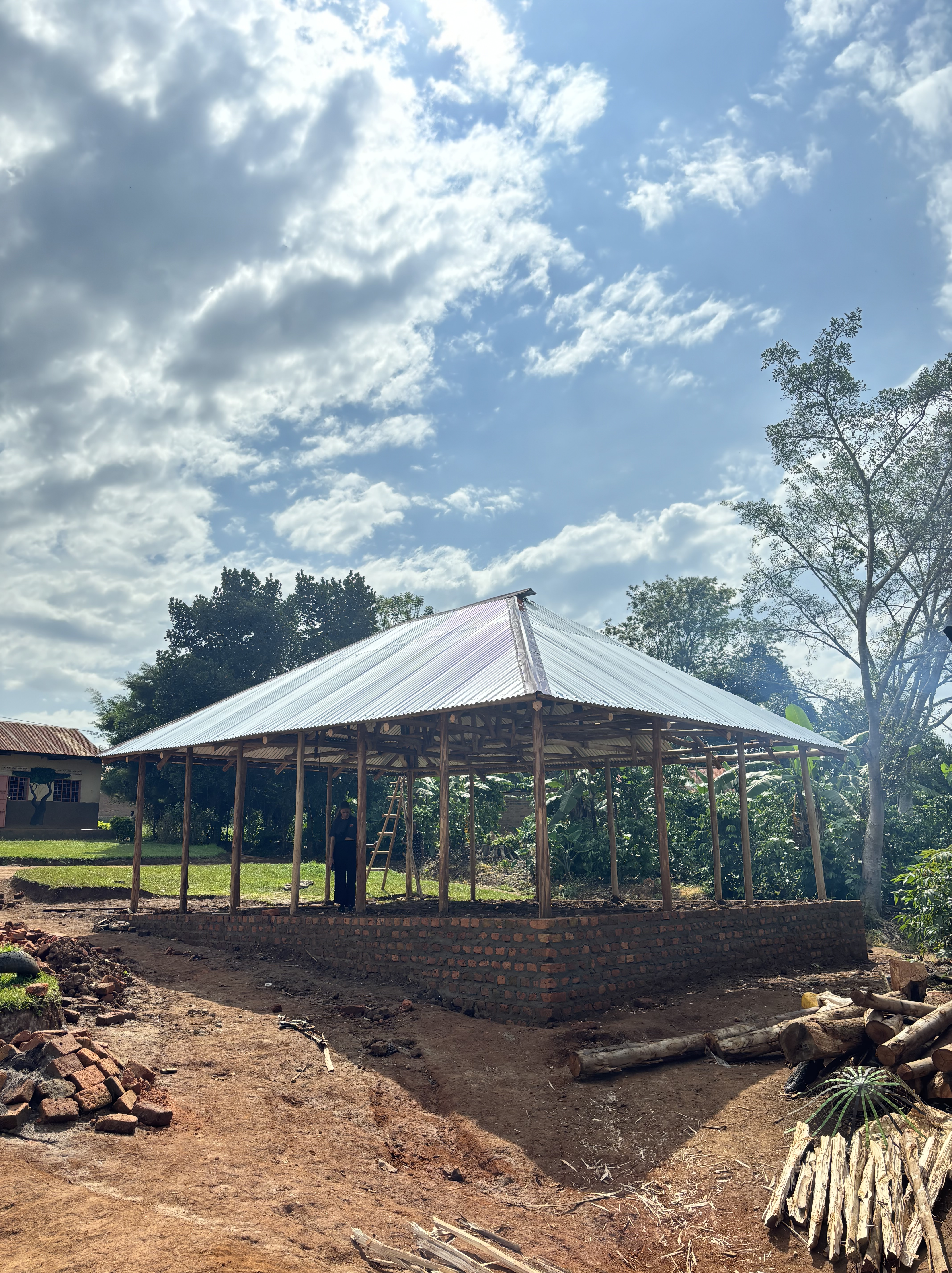 Maandag de week begonnen met een kijkje op de school om de vooruitgang van het project te peilen. Wederom werden we positief verrast want bijna het hele dak was bedekt met golfplaten. Ook zagen we dat de groenten die we een paar weken geleden geplant hadden flink gegroeid waren! Na kort overleg met Eddie, met een aantal kinderen naar een winkel in Kitengeesa gelopen. Dit is het dorpje waar de school zich bevindt. Op het lijstje stonden golfplaten, nagels en hoekkepers. Eenmaal aangekomen bij het winkeltje kwamen de donkere/zwarte wolken steeds dichter onze kant op. Gerald onze boda boda driver kwam ons daar ophalen zodat we voor de zware regenbui terug bij het appartement zouden zijn. Net op tijd waren we binnen, dus kon Gerald bij ons in huis schuilen. De mensen hier voelen zich altijd snel thuis bij iemand anders, dus hij ging languit in zijn winterjas op de bank liggen met zijn schoenen uit. Hem wat thee en een wentelteefje aangeboden, waarschijnlijk zijn eerste wentelteefje ooit!