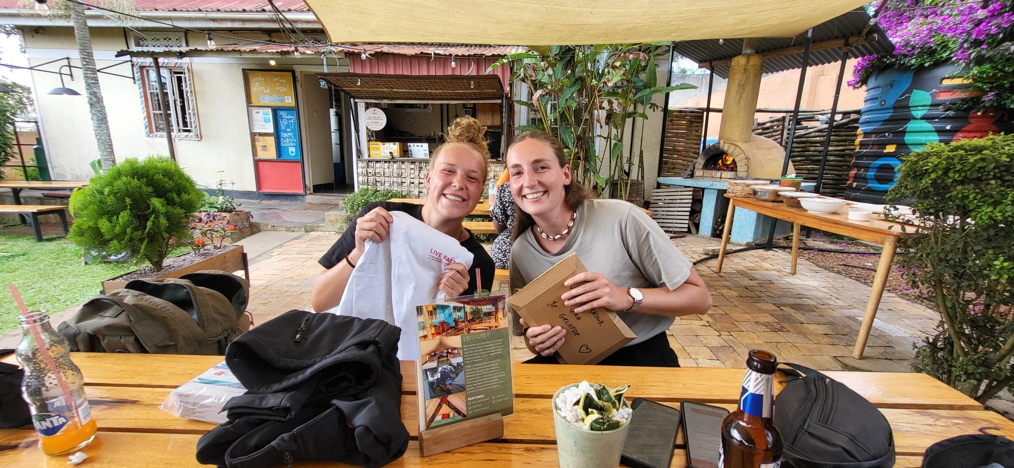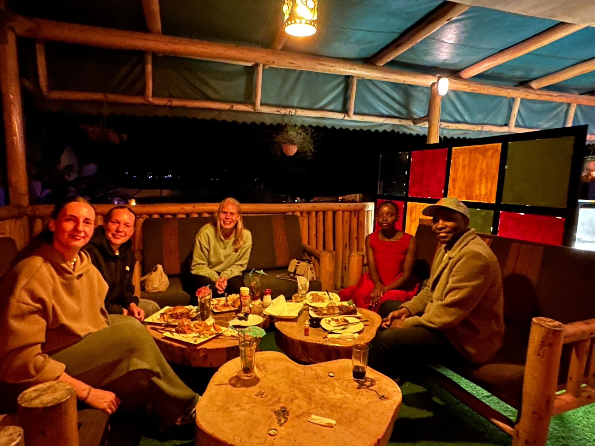 Terug in Masaka, iedereen zich opgefrist en tegen ze gezegd dat ze om 7 uur klaar moesten staan. Met Gerald en Ronnie ze met de boda boda opgehaald en naar Plot 99 gereden. Hun eerste boda boda rit was een feit! Wat verschillende gerechtjes op tafel gezet om met z’n allen te delen onder het genot van een cocktail. Het leven hier en de mooie safari trip na besproken, ze kunnen onze belevingen die we de afgelopen periode met hun hebben gedeeld nu beter plaatsen.