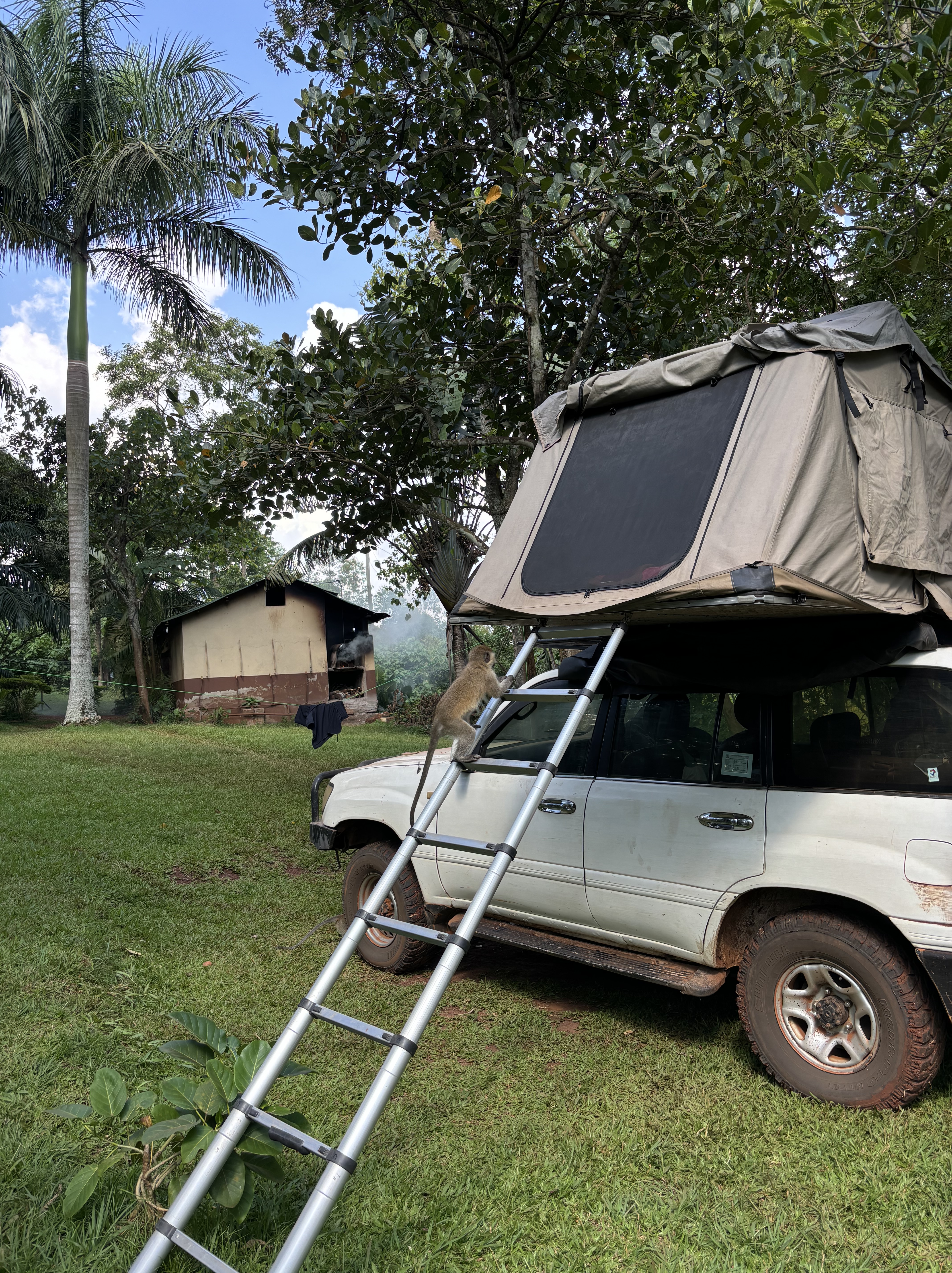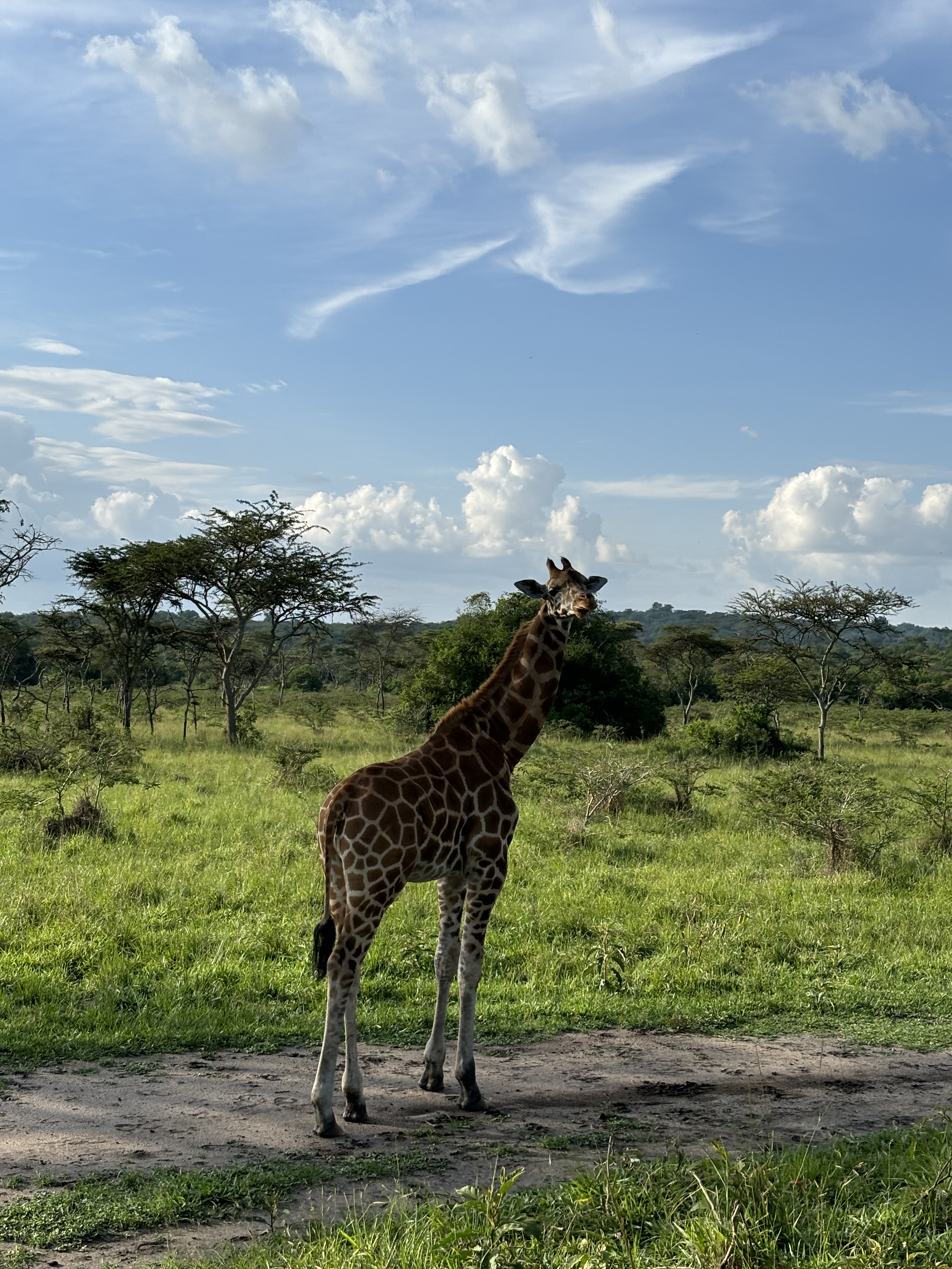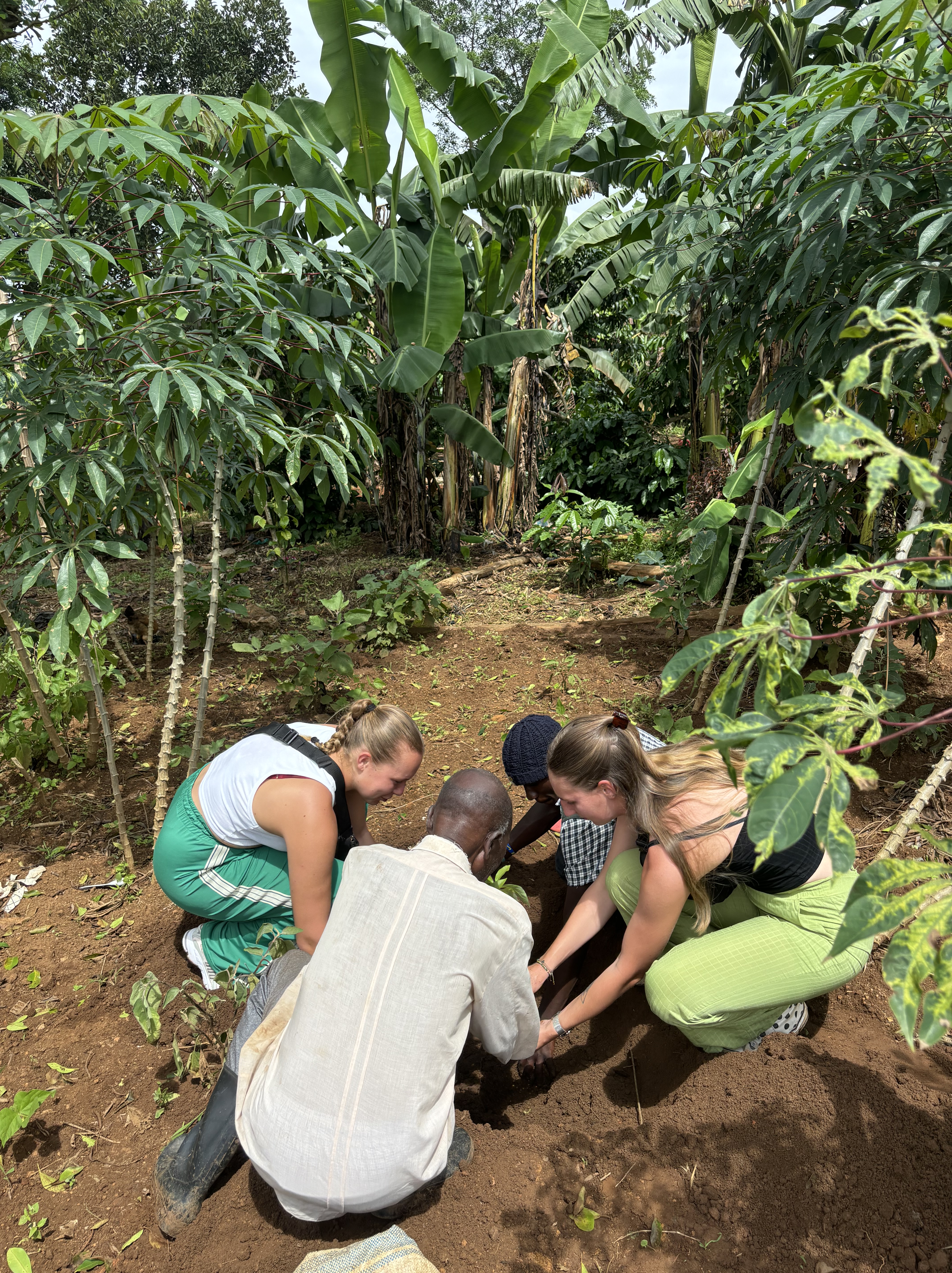 Tijdens een mini game drive door het park kwamen we vast te zitten met de safari bus in de modder… Dus hup de bus uit, om te gaan duwen. We waren omringt door giraffen, dat maakte de situatie heel erg bijzonder. Door het draaien van de wielen zaten we allemaal onder de modder, maar gelukkig konden we er allemaal mee lachen. De weg voortgezet en een bezoek gebracht aan een dichtbijgelegen cultureel dorpje. Een koeienhouder ontmoet met z’n koeien en geprobeerd te melken, dat was moeilijker dan verwacht. Hij zorgt goed voor de koeien en het was meer dan duidelijk dat hij om ze geeft. Het is normaal dat de mannen de melk winnen en de vrouwen hier thuis mee aan de slag gaan. Dat is waarom we naar de vrouw van hem gingen en ze liet ons zien hoe het traditionele proces van het maken van boter in zijn werk gaat. Ze liet zien hoe ze de traditionele melkpotten schoonmaken door middel van rook en ook wij mochten dit proberen. We mochten allemaal melk proeven uit een traditionele pot en er werd nog veel meer verteld over hun tradities in hun cultuur. In de regen teruggelopen naar de bus die ons terugbracht richting Masaka. Onderweg een kleine tussenstop gemaakt in een dorpje om aan de zijkant van de weg een rolex te scoren, een nieuw lokaal gerecht voor Monique en Richard.