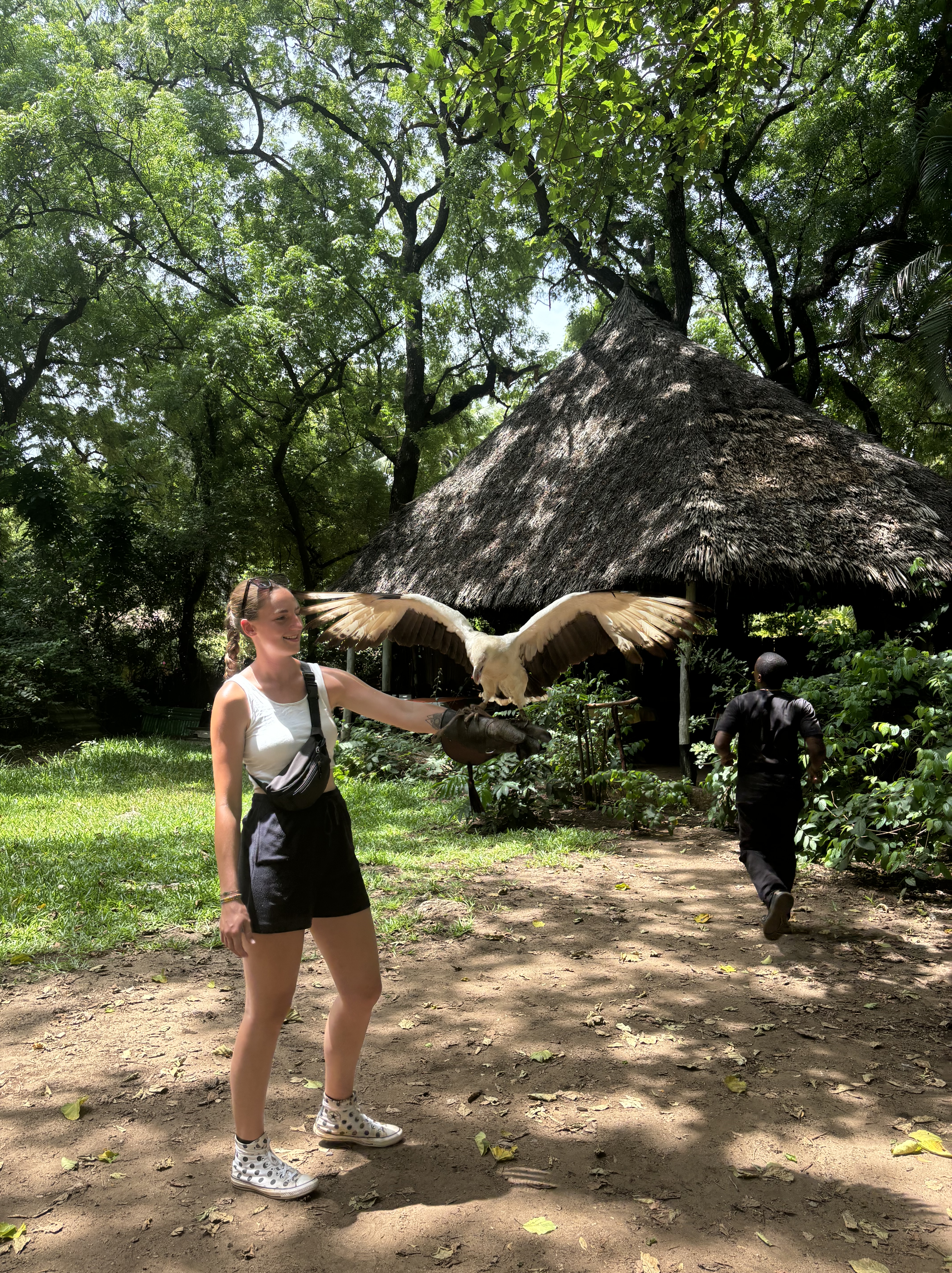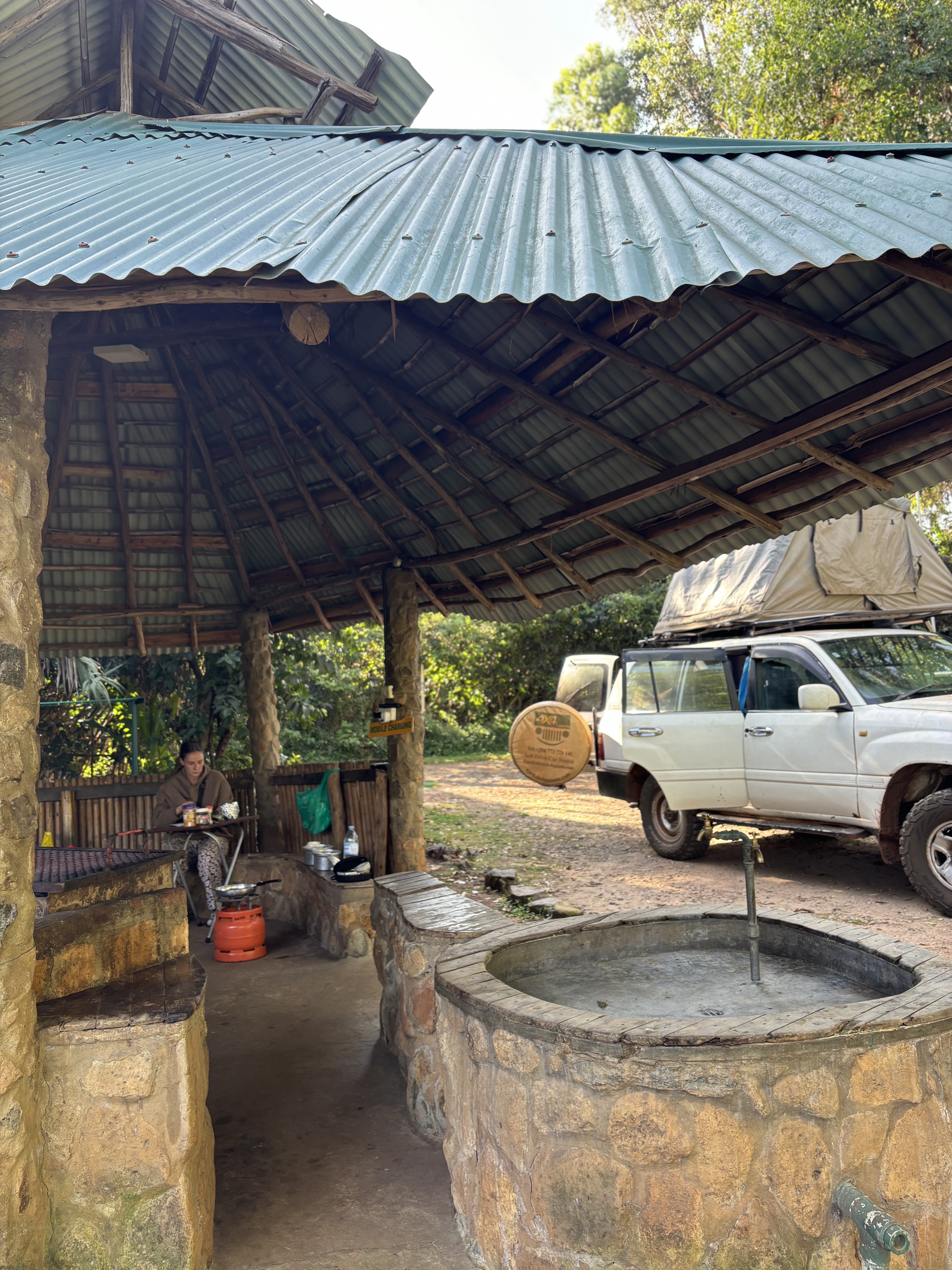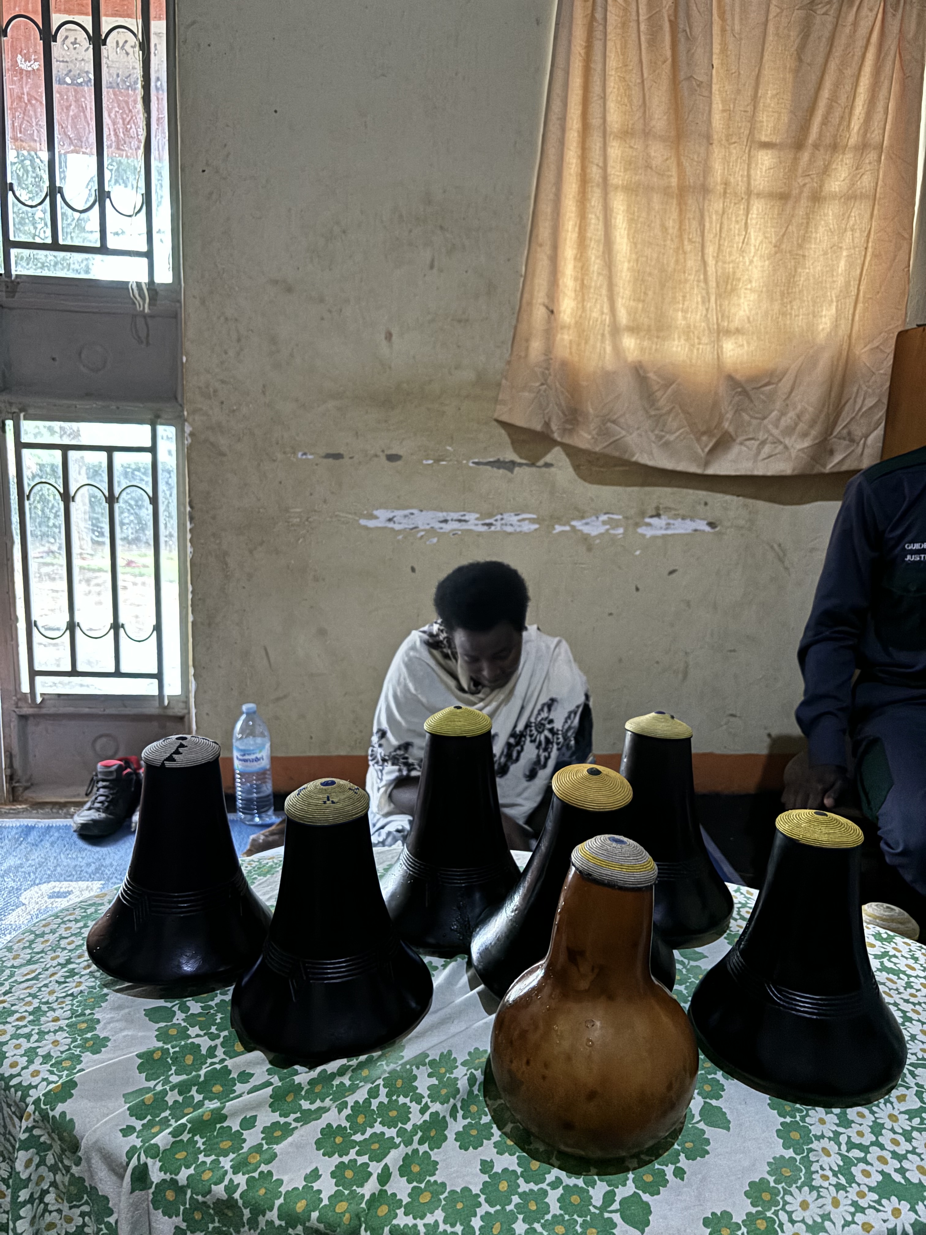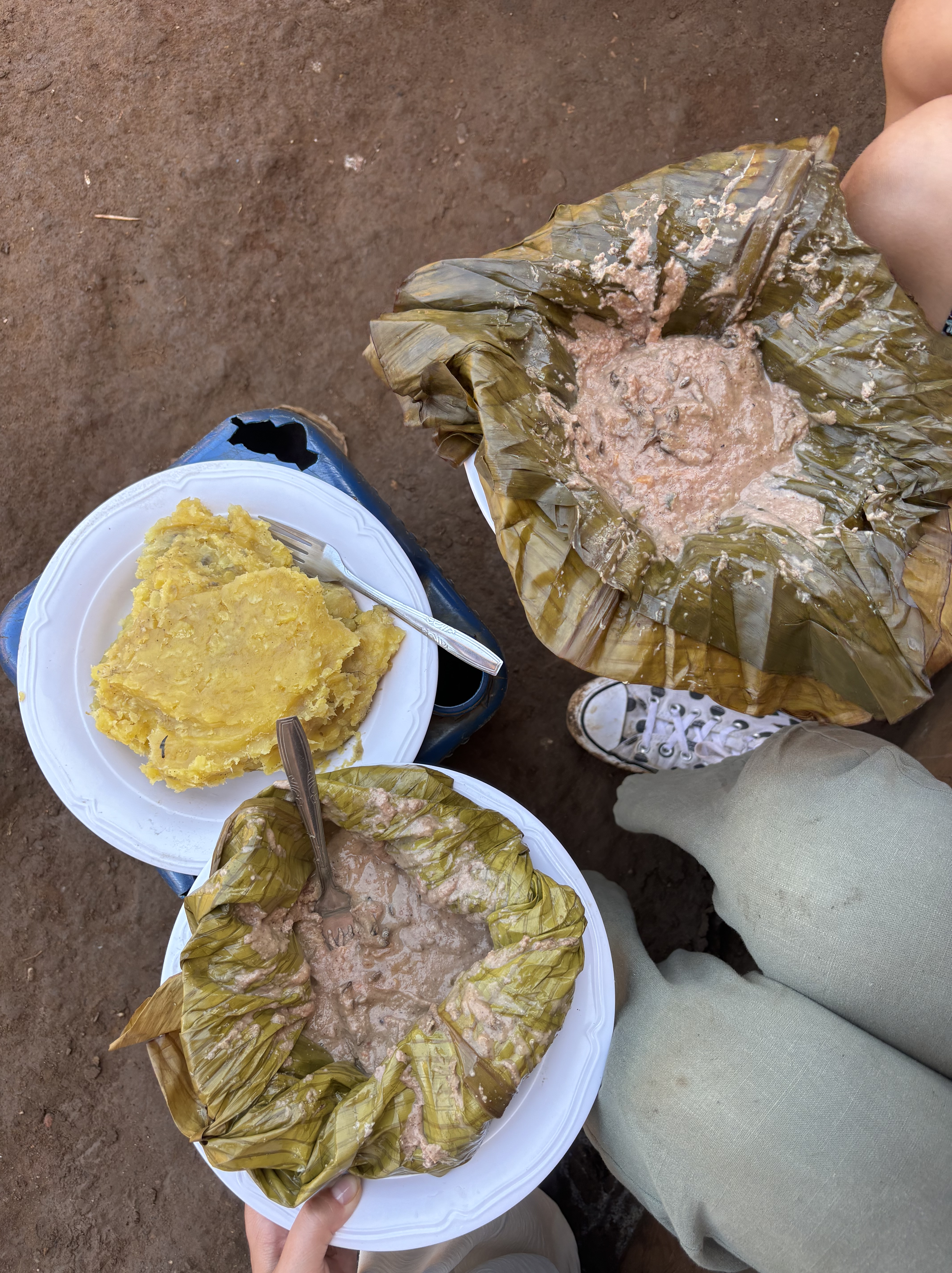 Tijdens een mini game drive door het park kwamen we vast te zitten met de safari bus in de modder… Dus hup de bus uit, om te gaan duwen. We waren omringt door giraffen, dat maakte de situatie heel erg bijzonder. Door het draaien van de wielen zaten we allemaal onder de modder, maar gelukkig konden we er allemaal mee lachen. De weg voortgezet en een bezoek gebracht aan een dichtbijgelegen cultureel dorpje. Een koeienhouder ontmoet met z’n koeien en geprobeerd te melken, dat was moeilijker dan verwacht. Hij zorgt goed voor de koeien en het was meer dan duidelijk dat hij om ze geeft. Het is normaal dat de mannen de melk winnen en de vrouwen hier thuis mee aan de slag gaan. Dat is waarom we naar de vrouw van hem gingen en ze liet ons zien hoe het traditionele proces van het maken van boter in zijn werk gaat. Ze liet zien hoe ze de traditionele melkpotten schoonmaken door middel van rook en ook wij mochten dit proberen. We mochten allemaal melk proeven uit een traditionele pot en er werd nog veel meer verteld over hun tradities in hun cultuur. In de regen teruggelopen naar de bus die ons terugbracht richting Masaka. Onderweg een kleine tussenstop gemaakt in een dorpje om aan de zijkant van de weg een rolex te scoren, een nieuw lokaal gerecht voor Monique en Richard.