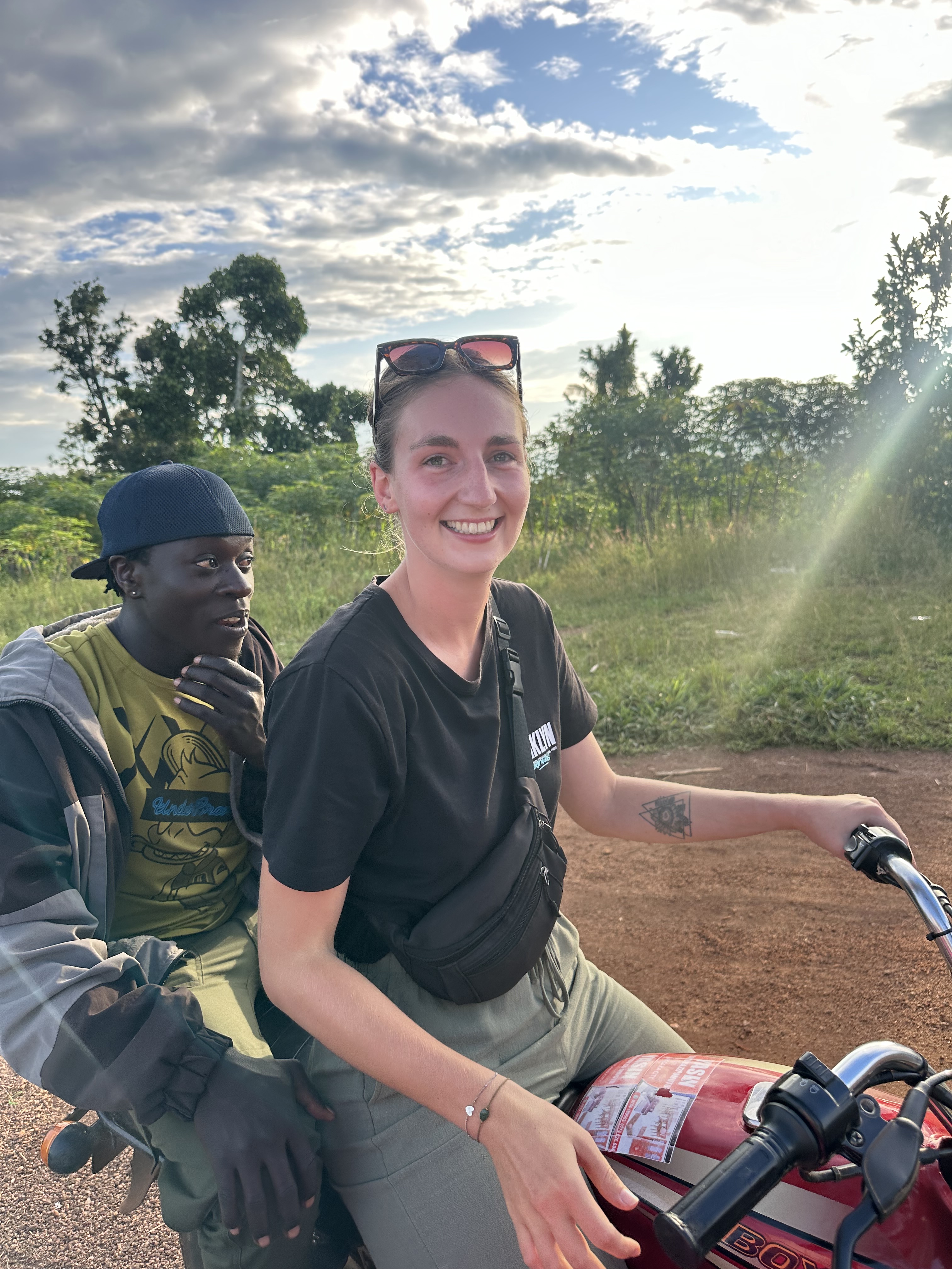 Er zijn bijna geen vrouwen hier die boda boda rijden en ook omdat we wit zijn, keek en riep iedereen naar ons. Soms sloeg de motor af midden op de rotonde of weg, maar dat maakt hier allemaal niet uit.