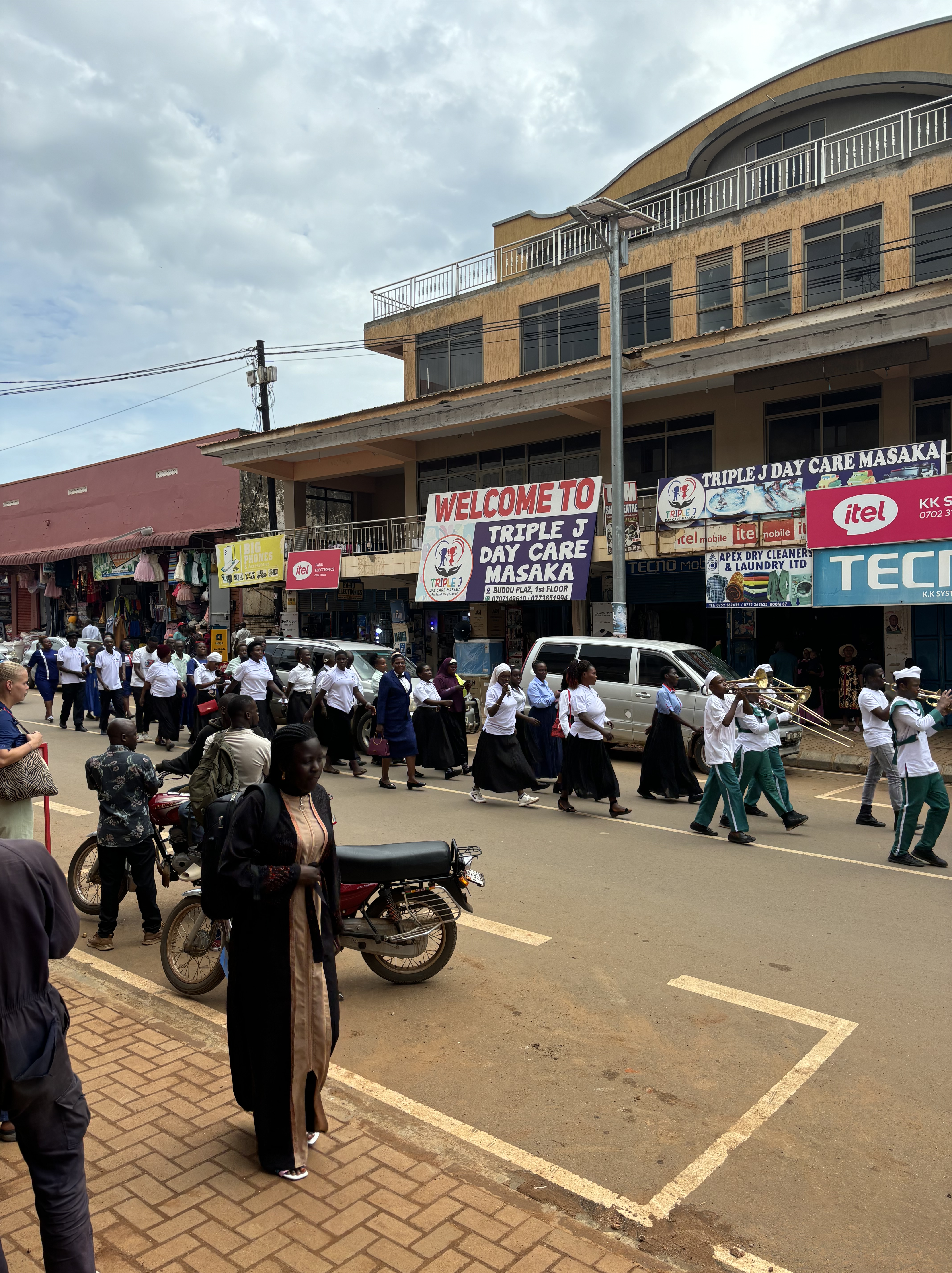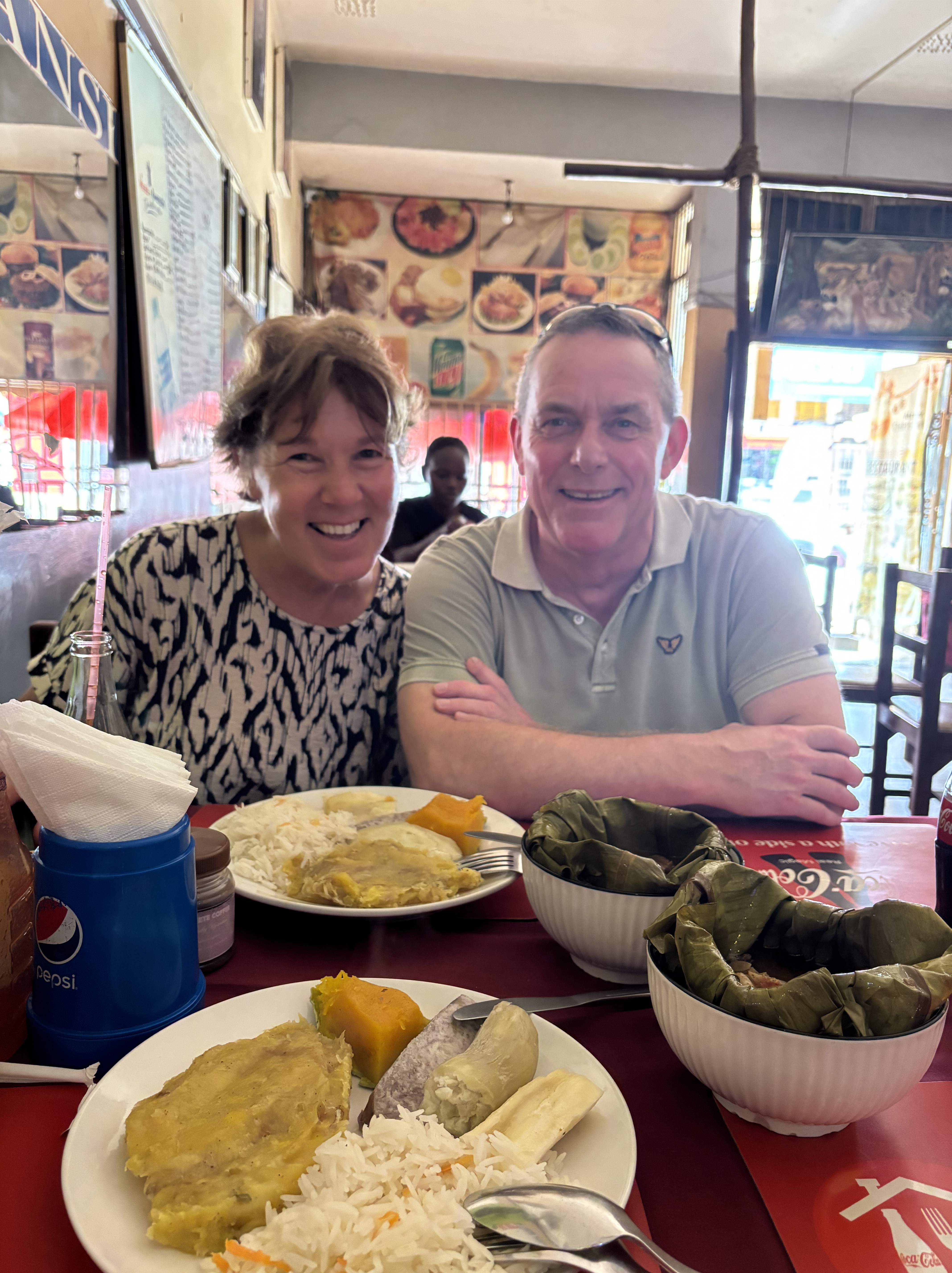 Dinsdag was het tijd om ons leven hier te laten zien aan hun. Ze weer met de boda boda opgehaald en gestart in Town met de rondleiding. Door alle straatjes in Town rondgewandeld en de plekken laten zien waar we wekelijks komen. Onderweg nog Crocs gescoord voor Richard en ballen en lolly’s voor de kinderen op school. Bij Tabula wat lokale gerechten op tafel laten zetten zodat ze dit konden proeven. Verder gewandeld naar ons appartement, hierdoor konden ze nog meer van Masaka zien. Koeien langs de weg, de verschillende huisjes en het prachtige uitzicht.