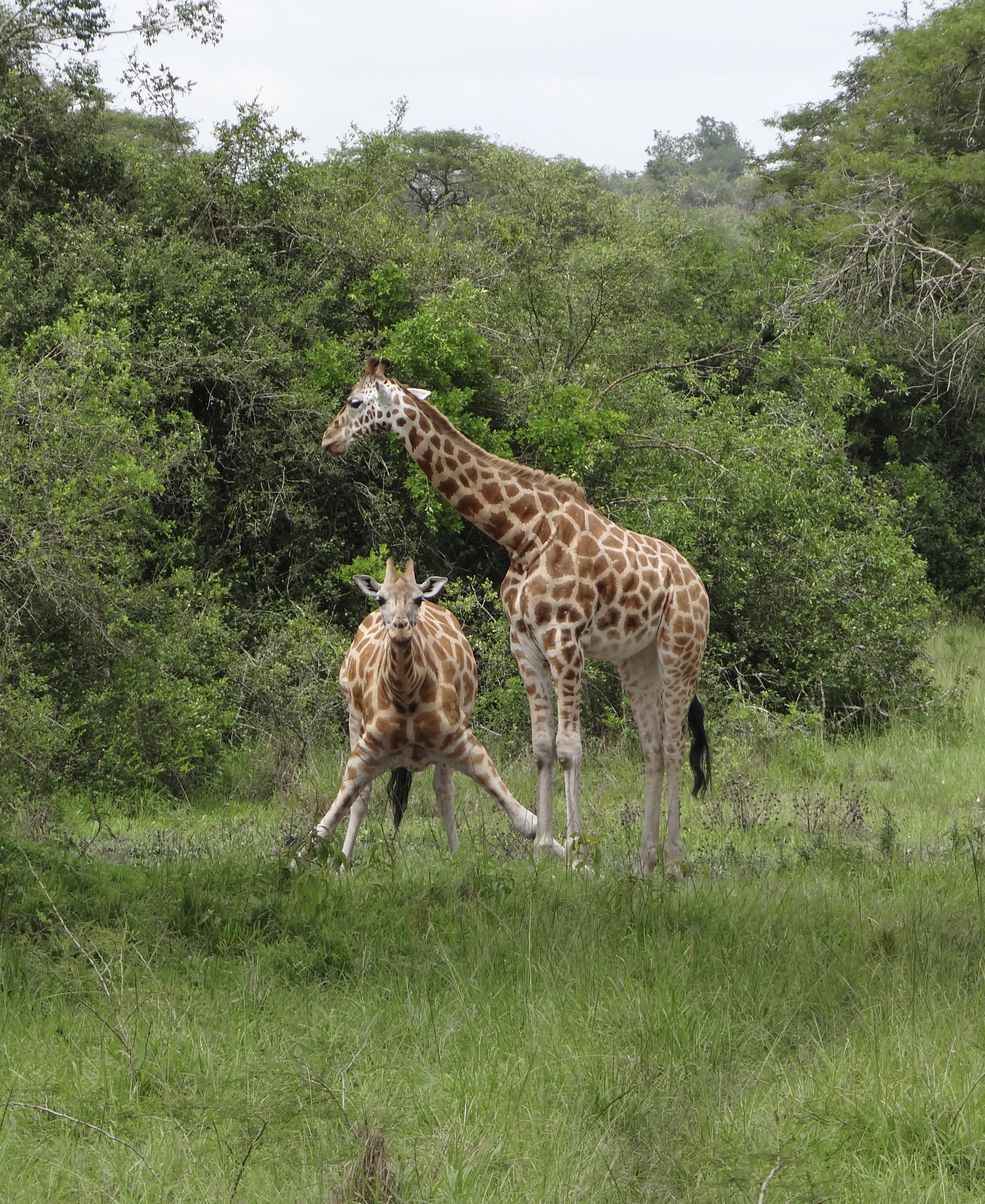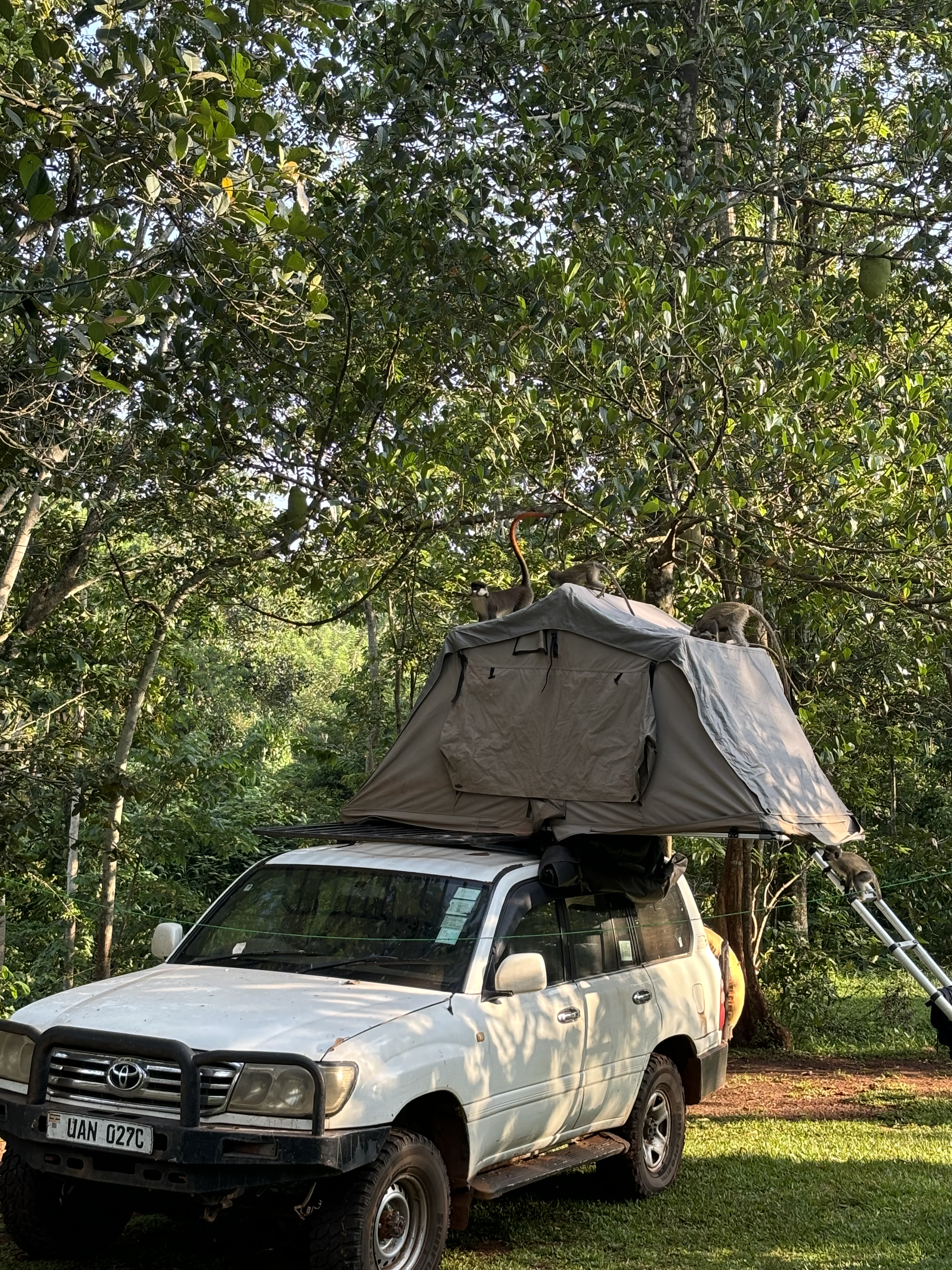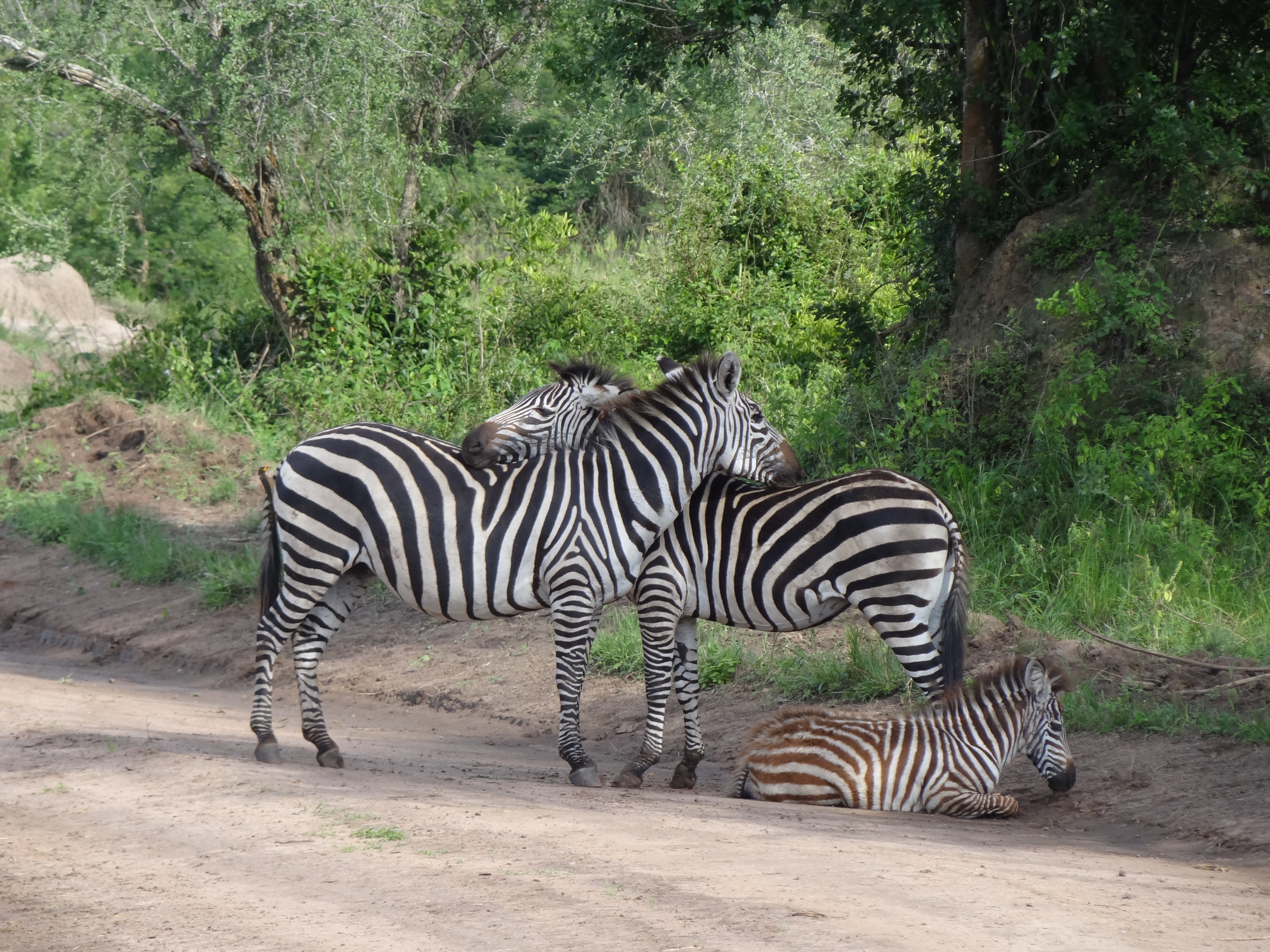 Voor Monique en Richard was dit de eerste safari en ze waren door de bootsafari al helemaal enthousiast. Het dak van de safari auto ging omhoog, dus de game drive kon beginnen. Het Lake Mburo National Park is heel anders dan het Queen Elizabeth National Park waar we eerder waren. Heuvelachtiger, meer begroeiing en andere dieren zoals giraffen, zebra’s, baboons, impala’s, kraanvogels en heel veel andere vogels. Op een gegeven moment, stuitten we op een groep giraffen, apen en kraanvogels, we wisten niet waar we moesten kijken. Een flinke hobbelweg terug naar de lodge waar we ons konden opfrissen in onze mooie kamer met een heerlijke warme douche! De bananensoep stond al voor ons klaar en hierna volgende de beef teriyaki met rijst en een stukje cake als dessert. Onder het genot van een wijntje deze indrukwekkende dag afgesloten. Heel bijzonder om dit zo met z’n vieren te mogen meemaken.