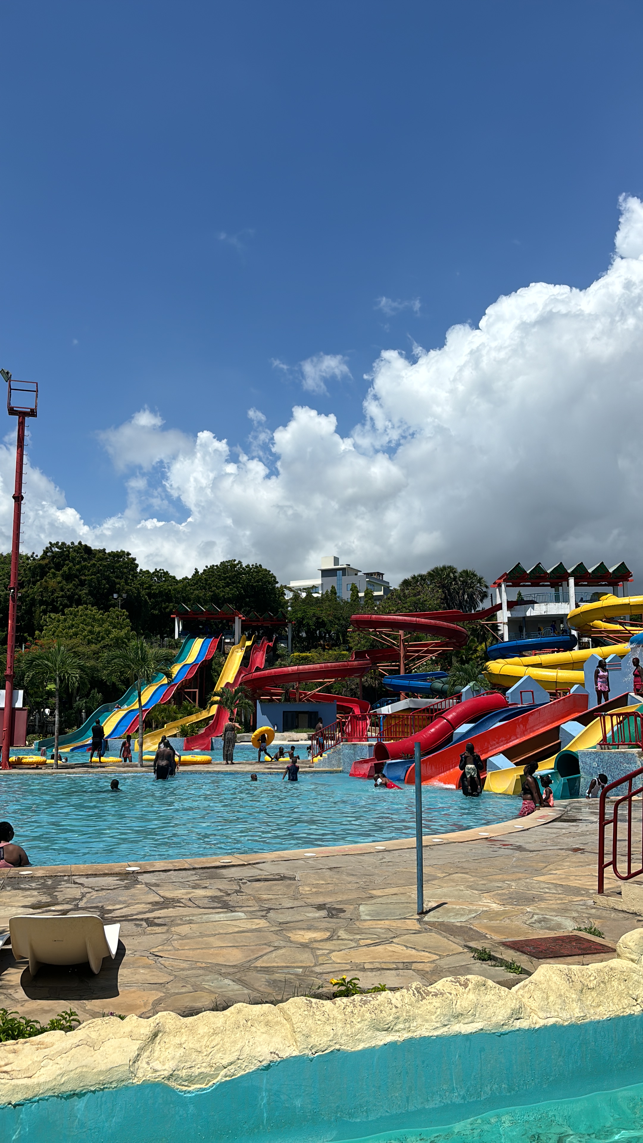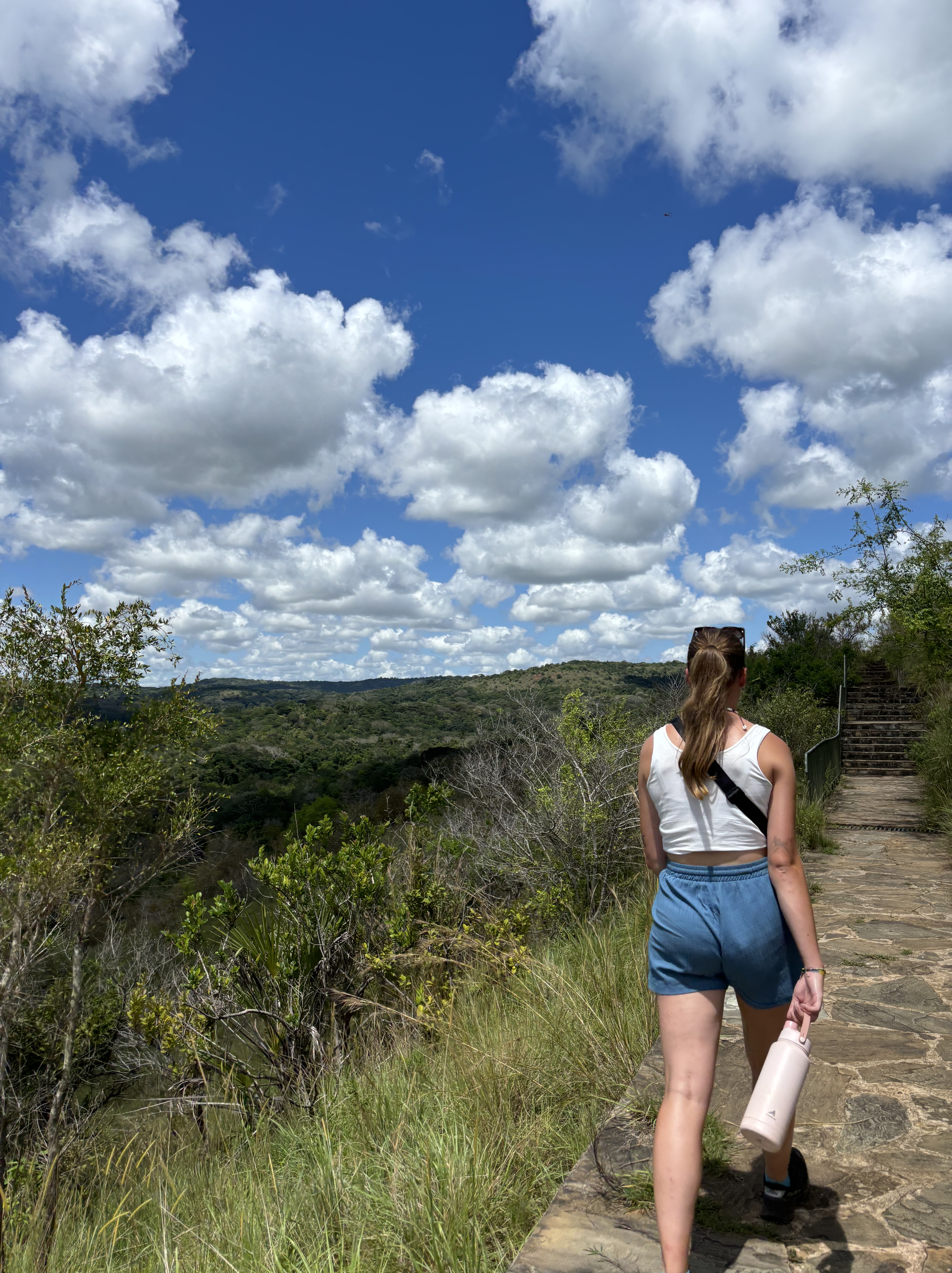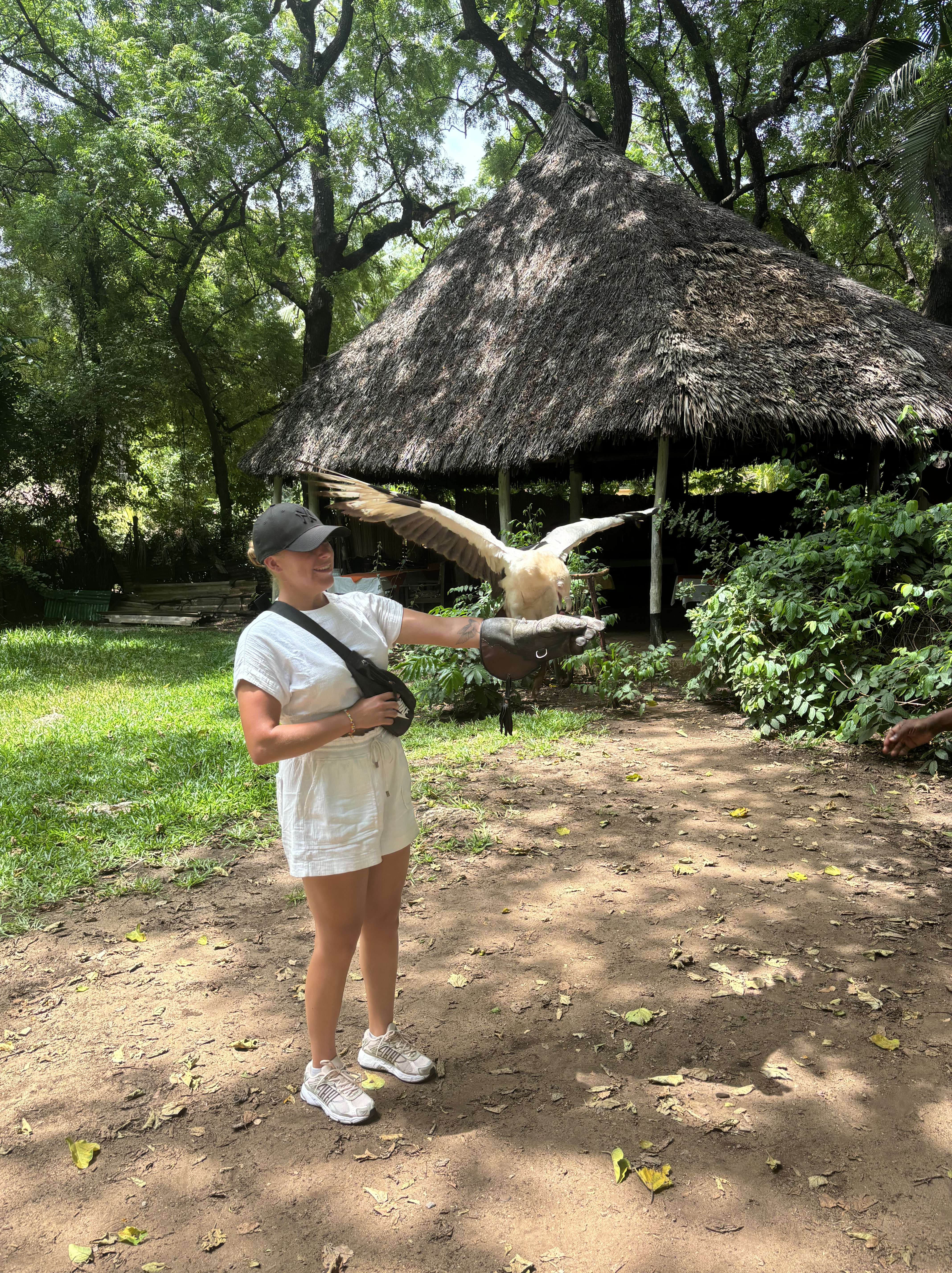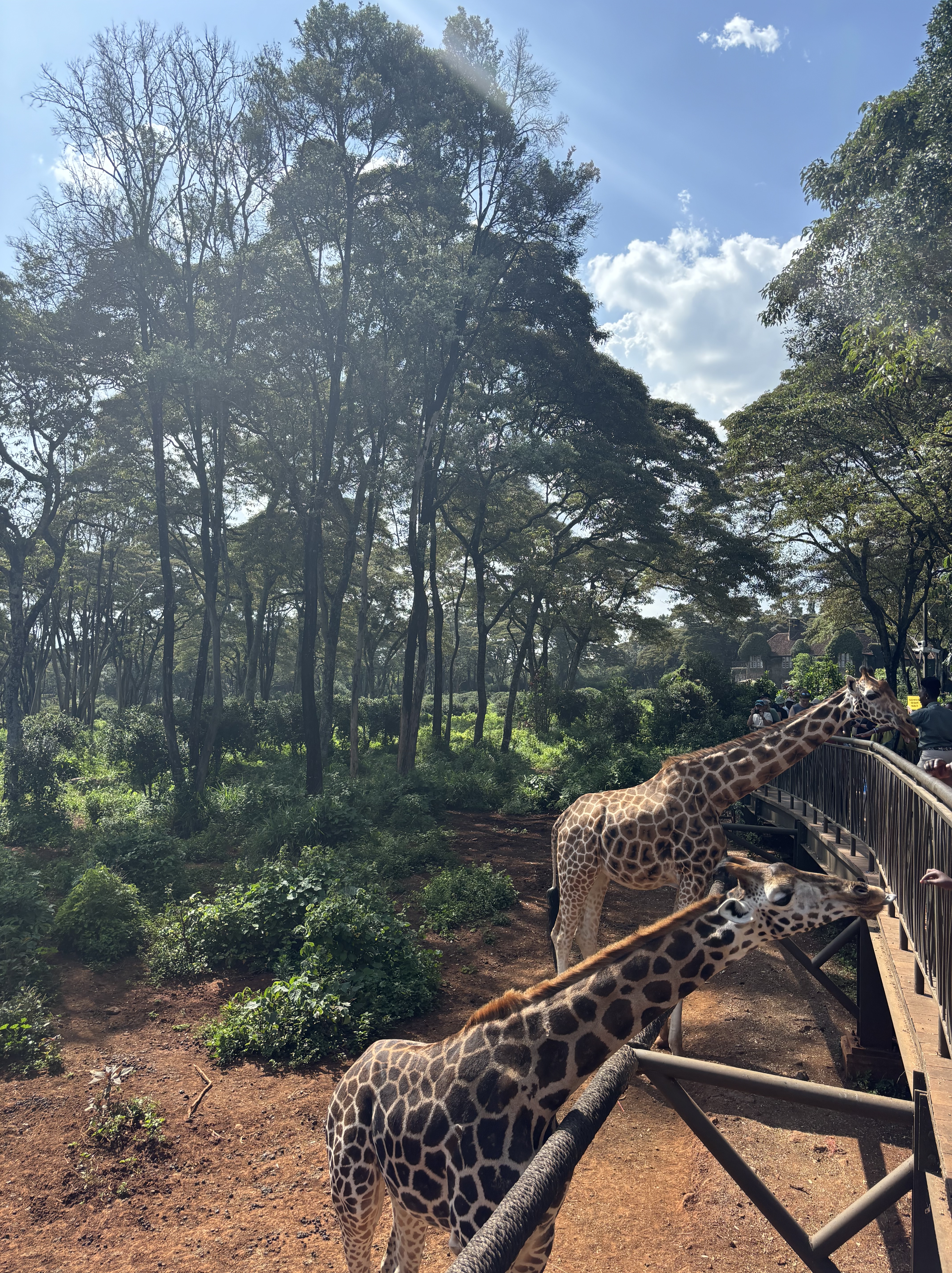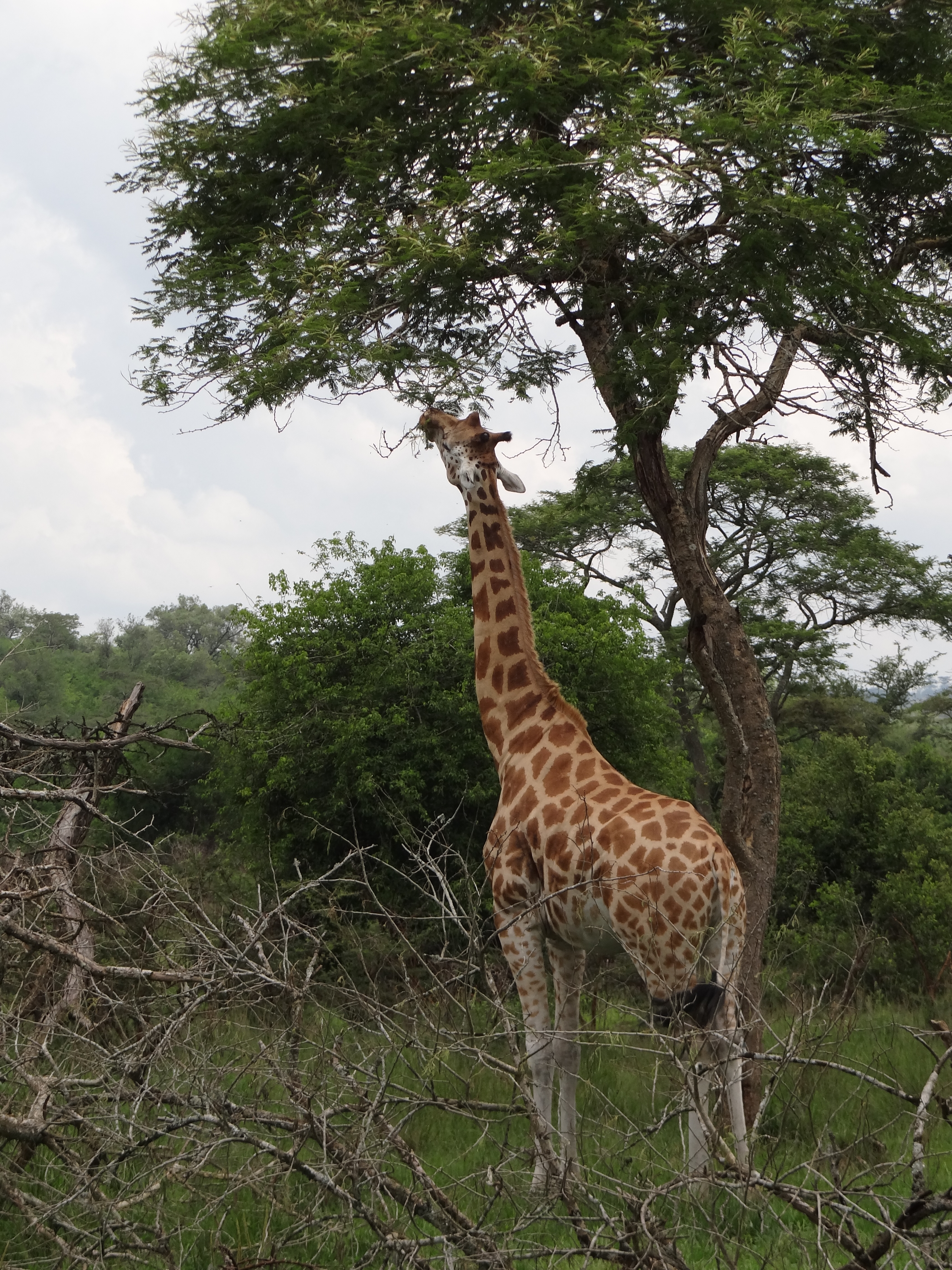 In tijden hebben we niet zo goed geslapen als hier. Het was een heerlijk bedje en het was zo stil om ons heen. Toen we wakker werden beseften we pas hoe slecht we normaal eigenlijk slapen. Vanuit ons balkon was er een prachtige zonsopkomst te zien, je kunt niet beter wakker worden dan dit. Uitgerust aan het uitgebreide ontbijt begonnen zodat we onze reis konden voortzetten naar de volgende activiteit. Een misselijkmakende autorit door de rimboe bracht ons naar een super-de-luxe lodge die de paardrijdsafari voor ons zou gaan verzorgen. Voordat we op het paard zaten, flink gelachen over hoe we eruit zagen. Lise met haar pofbroek en haar veel te grote helm waardoor ze leek op een ridder en Anouk met een helm die leek op een bowlingbal. Allemaal op een paard gestapt waardoor de rit kon beginnen. Het was zo’n bijzondere ervaring om te paard door het safaripark te rijden. Je gaat van de paden af en bent zo echt een met de natuur en de dieren. Na een uur genieten terug gereden naar de stallen en de paarden afgezadeld. Voor Monique en Lise een droom die uitkomt en voor ons allen iets om nooit te vergeten.