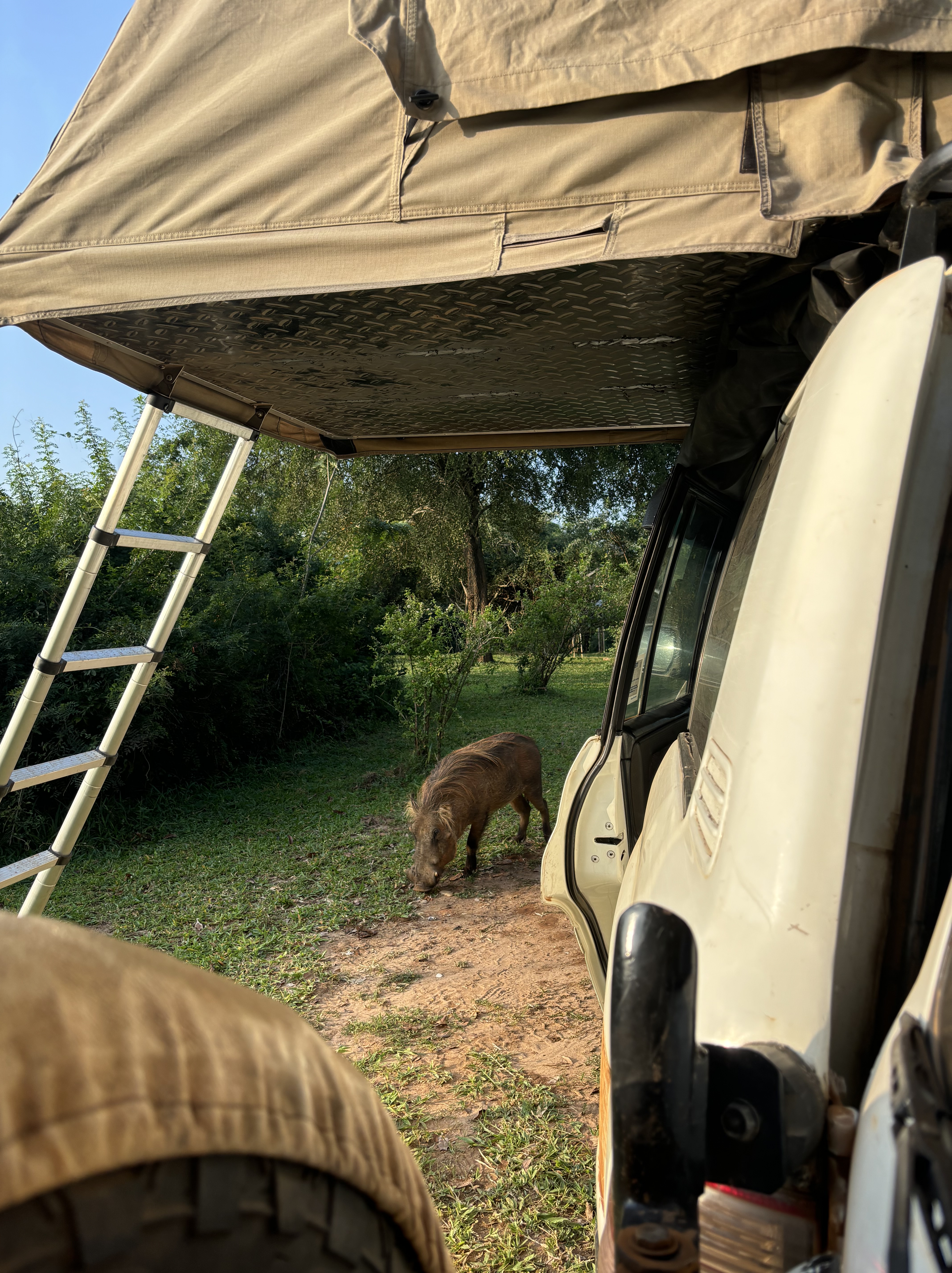Een twee uur durende tocht over het water. Verschillende nijlpaarden, aapjes, krokodillen, arenden en andere vogels gespot. Hierna stond de game drive door het park op de planning.
