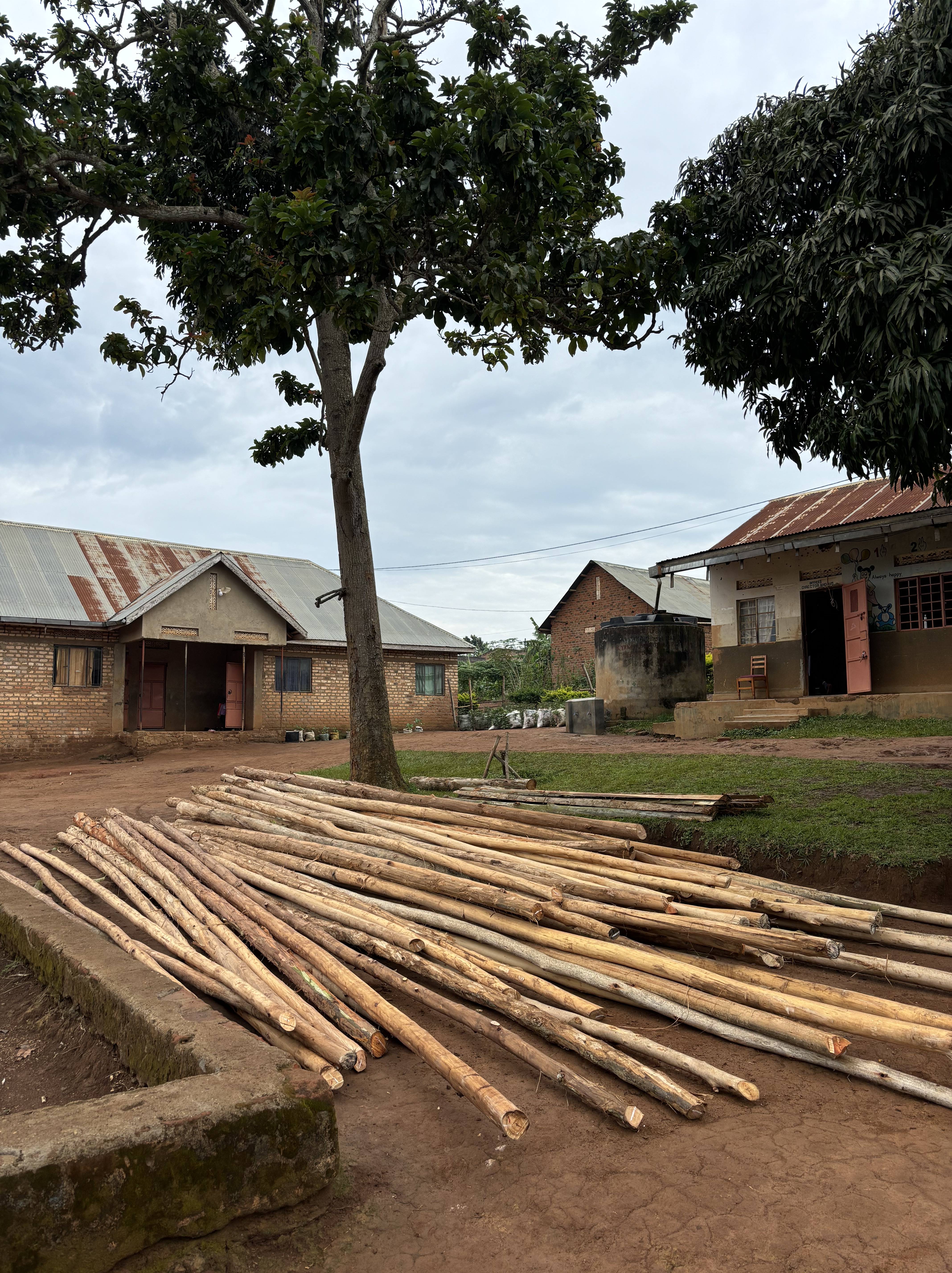 Maandag de week begonnen met een kijkje op de school om de vooruitgang van het project te peilen. Wederom werden we positief verrast want bijna het hele dak was bedekt met golfplaten. Ook zagen we dat de groenten die we een paar weken geleden geplant hadden flink gegroeid waren! Na kort overleg met Eddie, met een aantal kinderen naar een winkel in Kitengeesa gelopen. Dit is het dorpje waar de school zich bevindt. Op het lijstje stonden golfplaten, nagels en hoekkepers. Eenmaal aangekomen bij het winkeltje kwamen de donkere/zwarte wolken steeds dichter onze kant op. Gerald onze boda boda driver kwam ons daar ophalen zodat we voor de zware regenbui terug bij het appartement zouden zijn. Net op tijd waren we binnen, dus kon Gerald bij ons in huis schuilen. De mensen hier voelen zich altijd snel thuis bij iemand anders, dus hij ging languit in zijn winterjas op de bank liggen met zijn schoenen uit. Hem wat thee en een wentelteefje aangeboden, waarschijnlijk zijn eerste wentelteefje ooit!