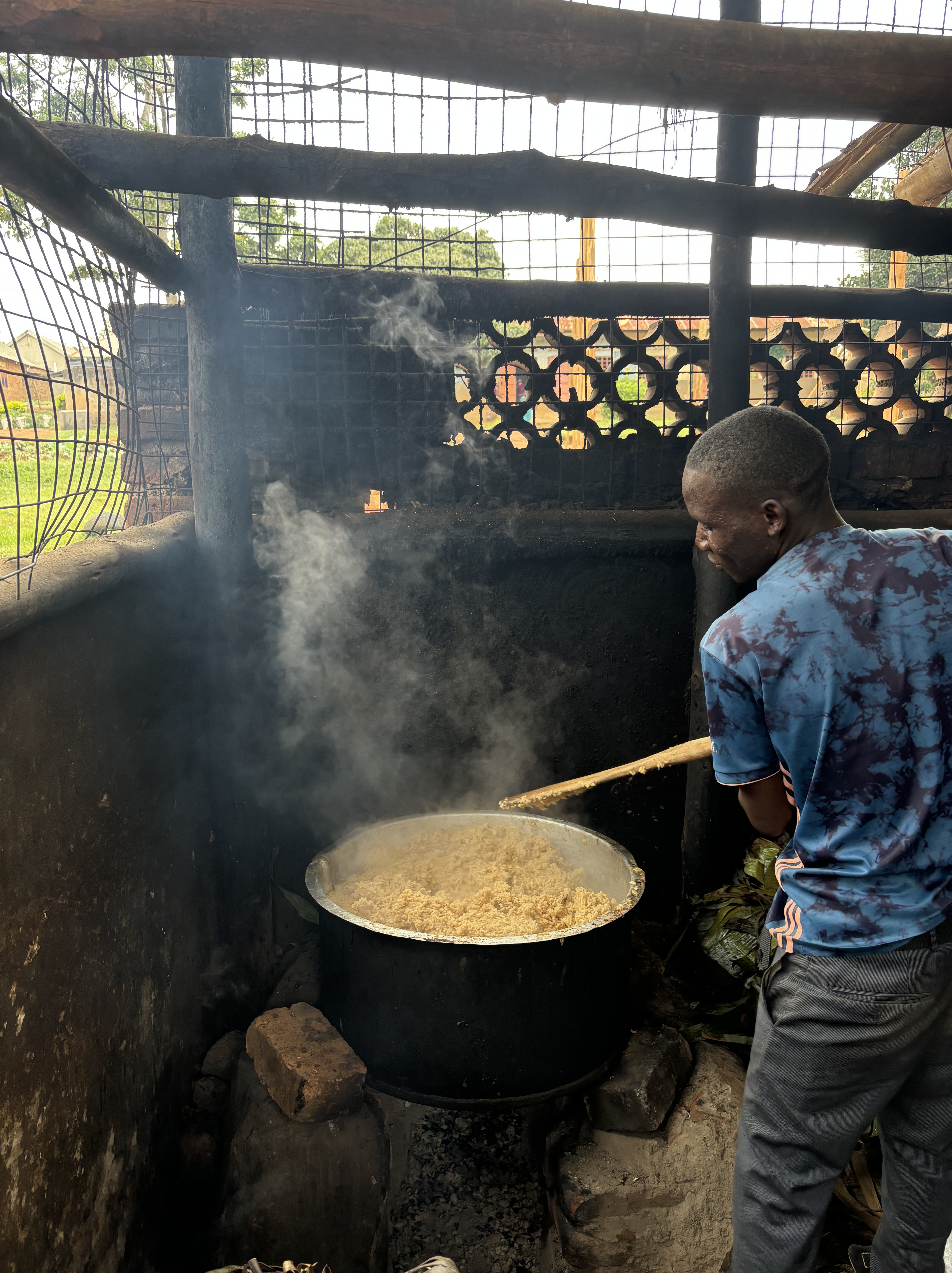 Na een minder goede nachtrust dan verwacht, gaan ontbijten en de terugreis naar Masaka gestart. Afgezet op het plein, waar alle bussen zich verzamelen. Een vrouw hielp ons naar de goede bus die al klaar stond om te vertrekken. Een veel te warme, stinkende en rammelende bus moest ons naar Masaka brengen. Onderweg wordt er een paar keer gestopt en dan komen er verschillende mensen binnen die eten en drinken verkopen. Geit op een stokje, geroosterde mais, chapati, bananen, frisdrank en nog veel meer. De conducteur zou ons roepen als we bij de juiste bus stop waren. Toen we arriveerde liet hij ons per ongeluk schrikken omdat hij met zijn hoofd zo dichtbij kwam om ons te vertellen dat we er waren. Personal space kennen ze hier namelijk niet echt. Uitgestapt bij een ander benzinestation dan verwacht, moesten we nog wachten op Gerald of Ronnie, altijd een verrassing wie ons komt ophalen.